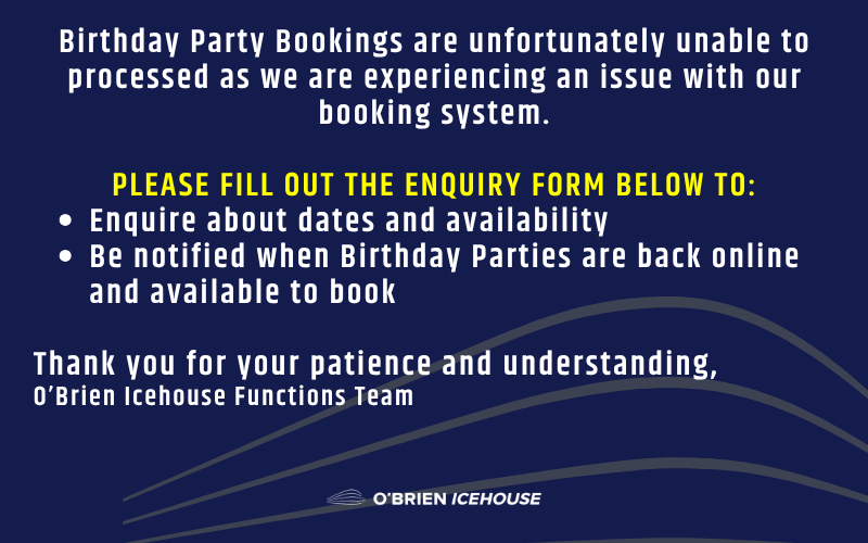 Our Birthday Parties run for 2-hours and are hosted by one of O’Brien Icehouse’s highly experienced Party Hosts. We take care of everything for you!