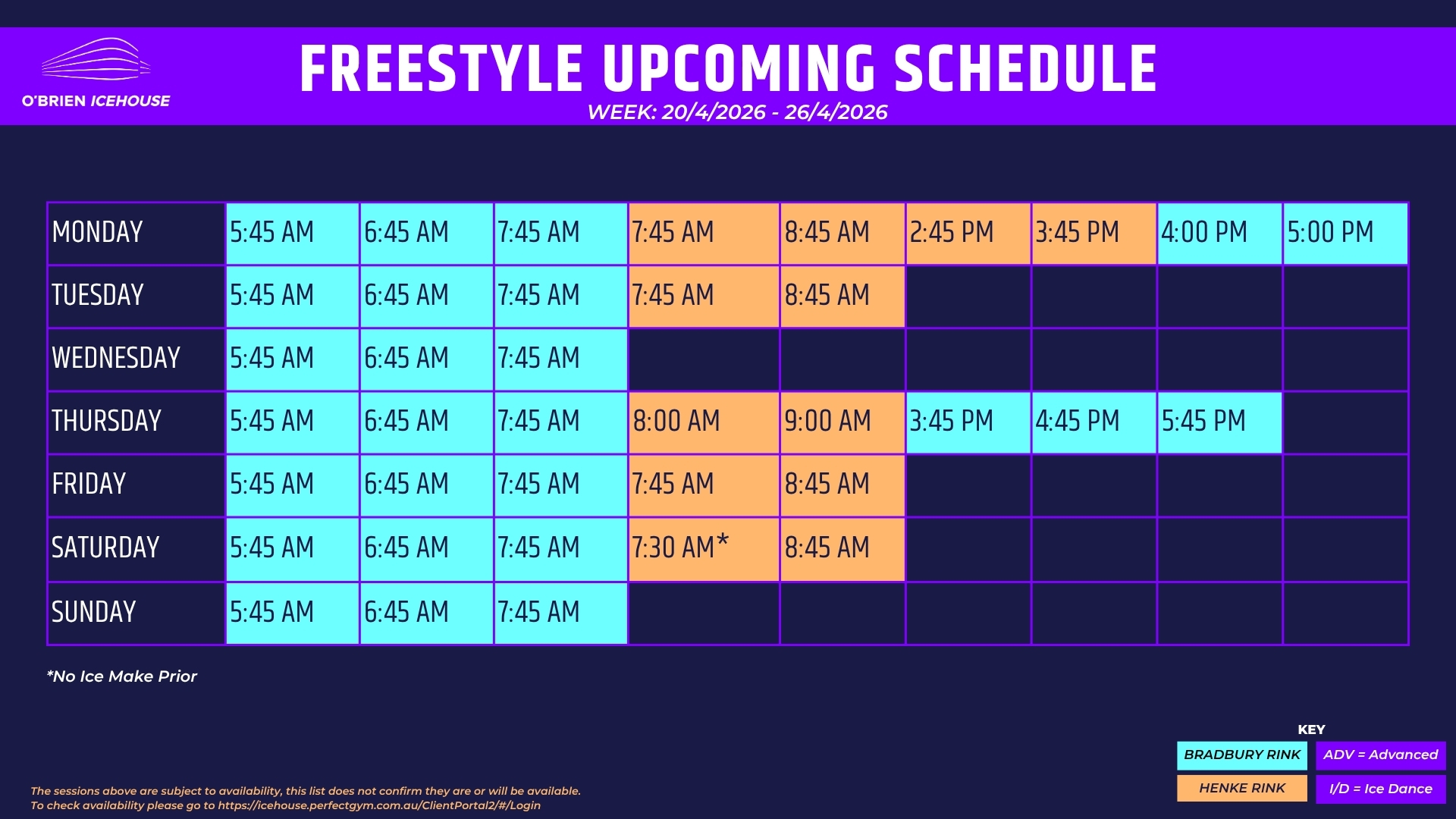 Synchro Training Times and Ice Fees enquiries can be directed to Skate School [email protected]