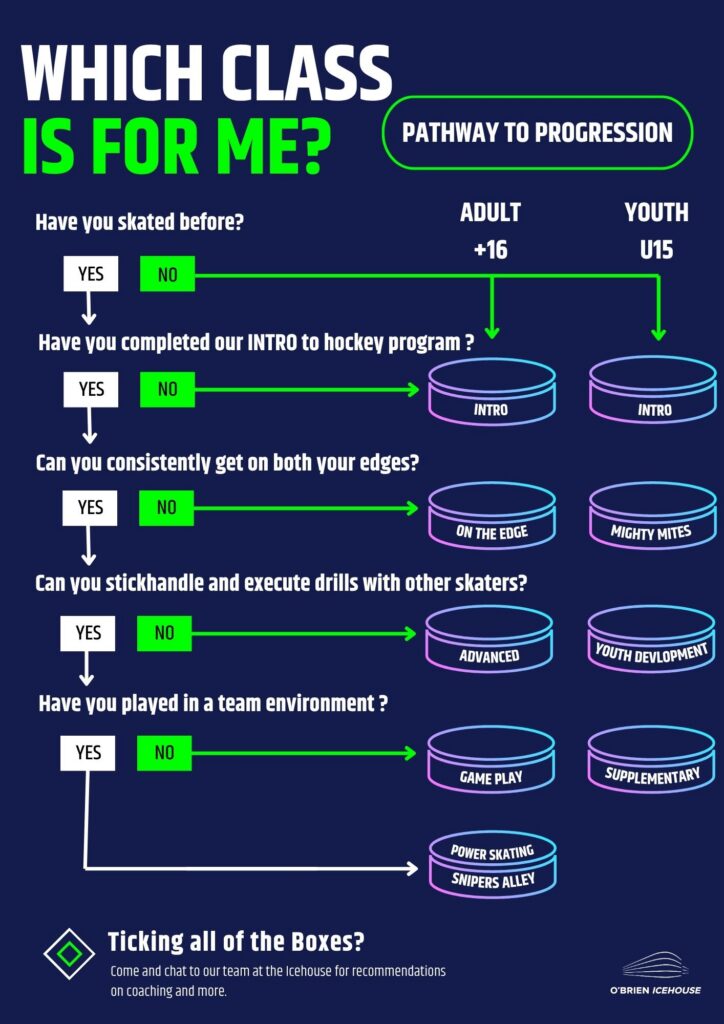 If you’re new to hockey, you’ll begin with our Introduction to Hockey Program. For those looking to enhance their skills, we offer a variety of classes, check out the pathways below. Children under six who have never skated before must complete at least one term of Skate School before joining the Hockey Academy.