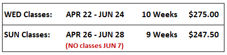 Due to the high demand for our classes, we require full upfront payment before the start of each term